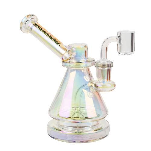 The Vector Concentrate Rig includes a four-hole perc and an extra-long mouthpiece. The compact size delivers delicious-tasting terpene flavours and the mouthpiece is perfect for those with long hair who prefer some distance between themselves and the heated banger. – 100% borosilicate glass – Metallic Terminator finish – Four-hole perc – Quartz banger included – Extended mouthpiece – Fits 14mm banger – Add a 14mm pull-out for flower use